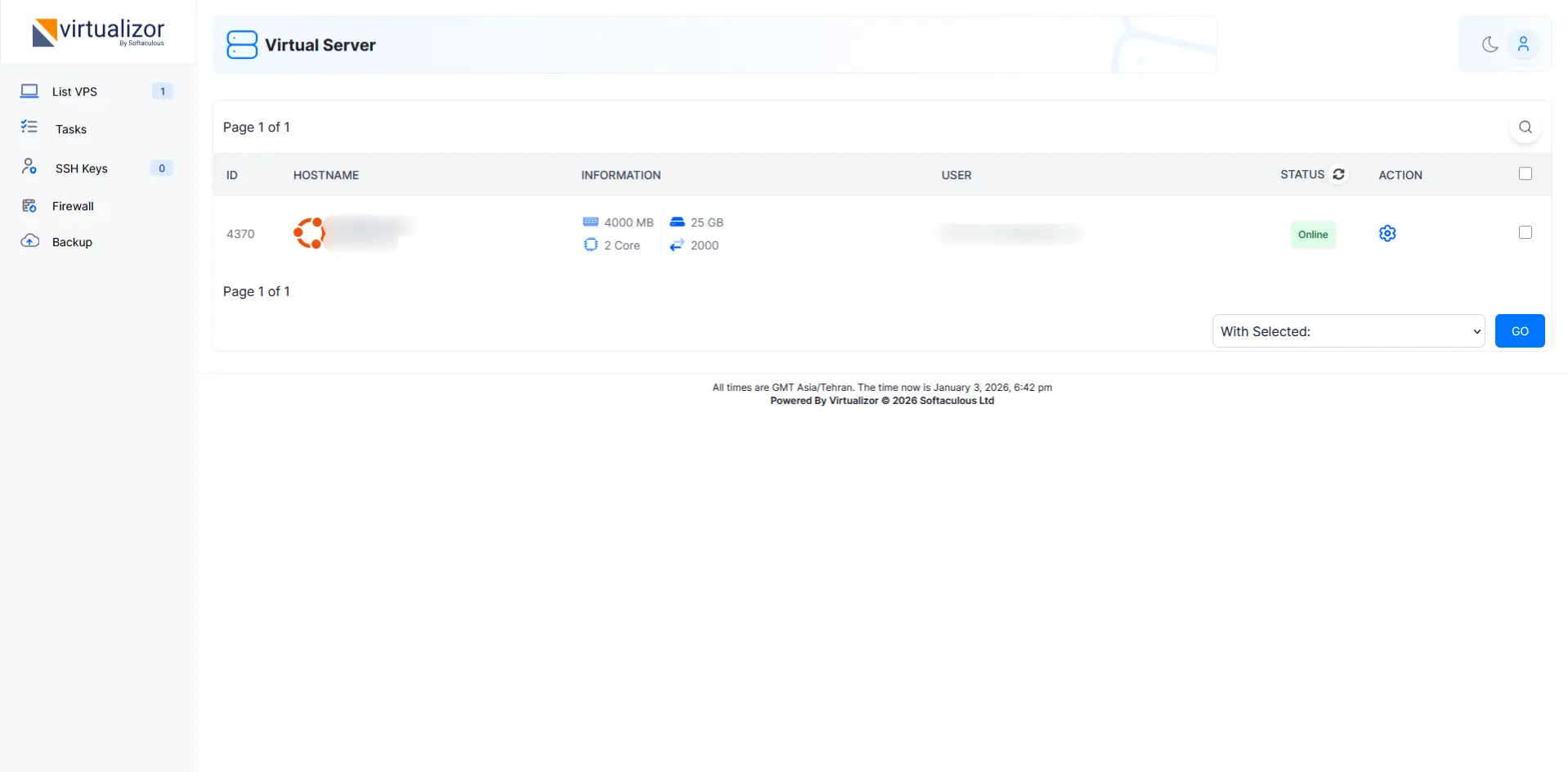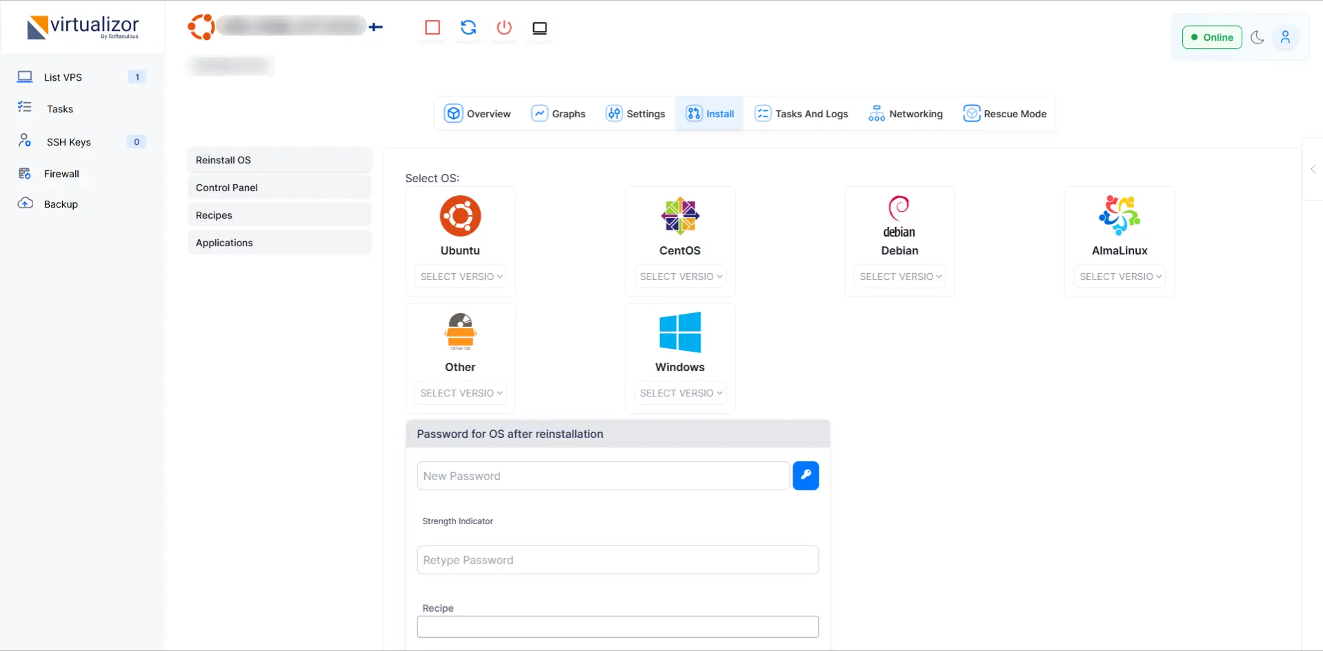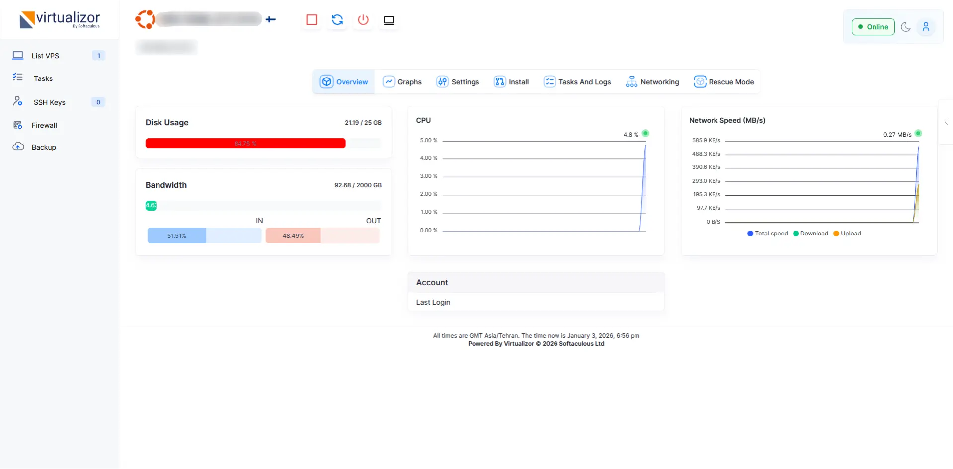 | پنل مدیریت | Virtualizor | |||||||